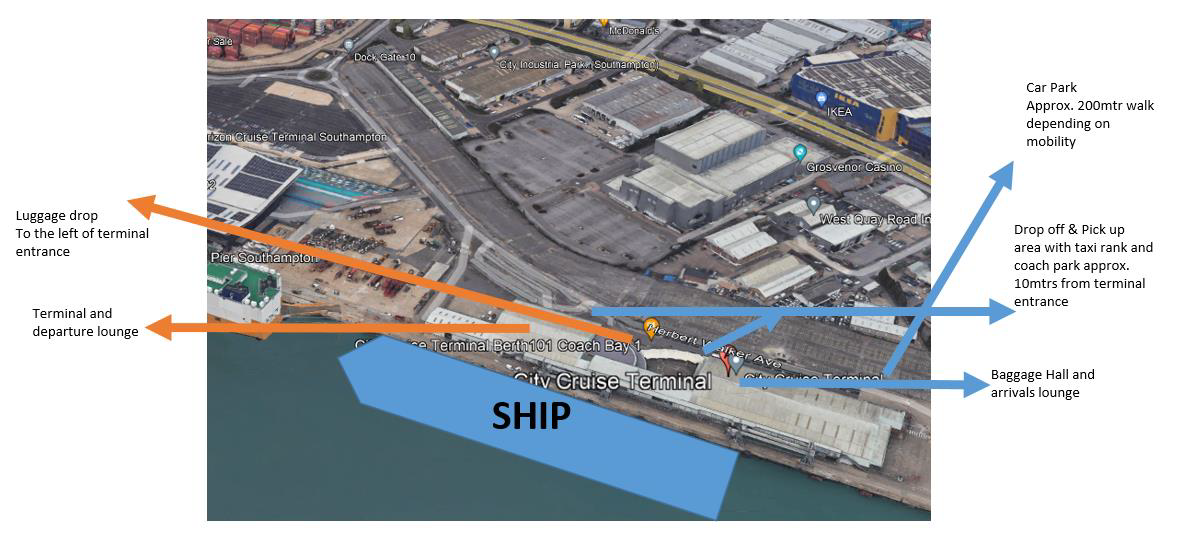 Car Parking Booking: Must be arranged directly with us at the time of booking. Details Required: Registration number and car make. If you hold a blue badge. Embarkation Guests park in an off-site car park (approx. 1 mile from the port). Luggage is ...