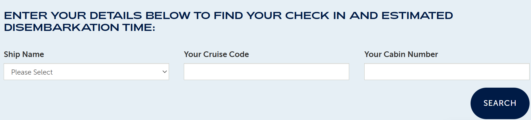 Once you have your cabin number, you’ll be able to check your allocated embarkation time and luggage label colour.